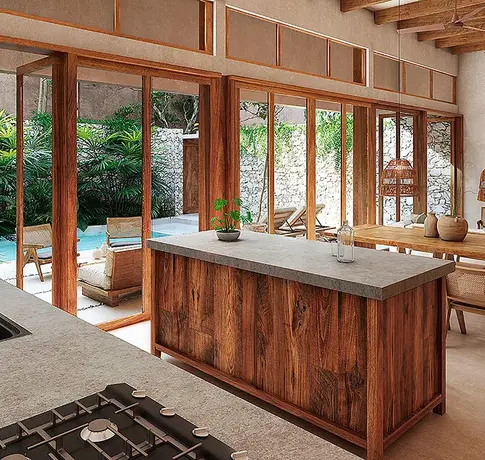 Diseño de hacienda tropical: Una estética atemporal que armoniza con el entorno natural de Tulum.
